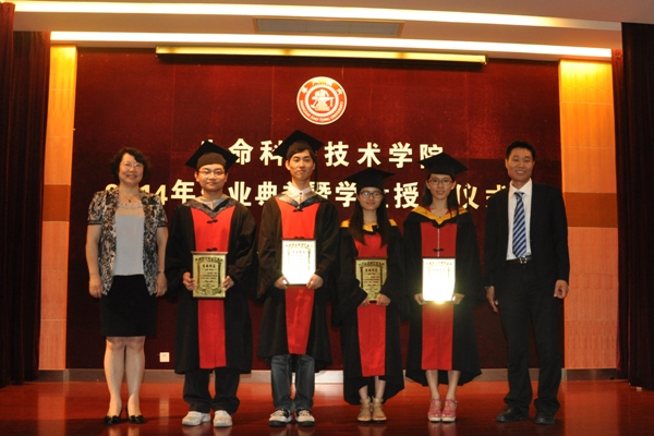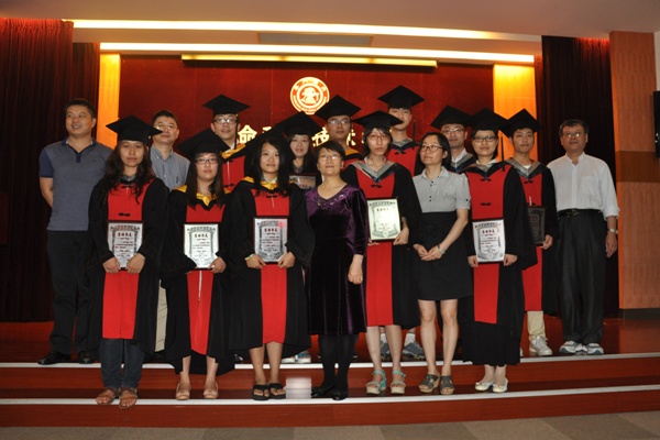 表彰环节中,学院硕果累累,毕业生满载而归:丁子旭等7名同学获得了优秀毕业论文奖,其中张少博、靳振明获得350vip8888新葡的京集团优异学士学位论文奖。钟正等4名同学获得了上海市优秀毕业生荣誉称号,王磊等11名同学荣获校优秀毕业生荣誉称号。教师代表为同学们颁发奖牌并合影留念。