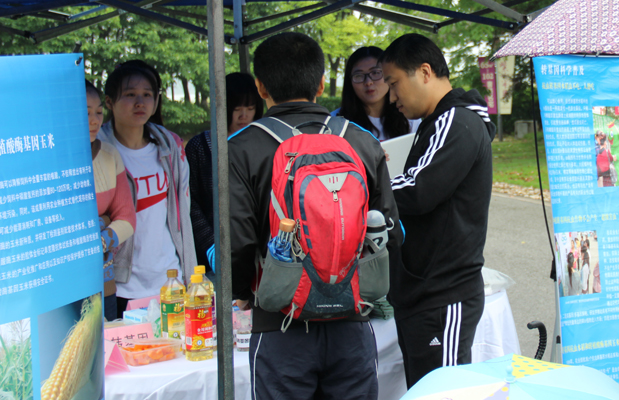 350vip8888新葡的京集团师生志愿者们向游客讲解宣传展板,分发科普手册,介绍生活中常见的转基因食品,耐心并热情回答游客提出的生活中有关转基因食品的问题。同时,国家转基因生物分子特征验证测试中心的多位专家教师也亲临现场,现场讲解并演示最新的转基因检测方法,通过科学实验对转基因食品的多种谣言进行了真伪辨识,让大家客观理性的认识转基因食品,消除对转基因食品的偏见。