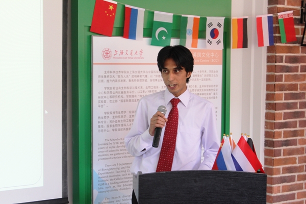 留学生Uzair Muhammad代表全体留学生分享了留学生在交大350vip8888新葡的京集团工作、学习的感受与体会,并代表全体留学生衷心感谢给予他们无微不至关心、帮助的学院领导、相关办公室、导师及其他老师、同学。正是这些弥足珍贵的关心帮助他们顺利适应了在中国的生活与学习,同时,也对中国和中国人民有了更深入的了解。Uzair代表全体留学生向仰颐书记、张雪洪副院长等学院领导献上了承载着他们浓厚感激之情的鲜花。随后,Md Rezaul Islam Khan、Raja Amjad Waheed khan、Tatiana Serdyuk、Ramasamu Anbuchezhian等留学生代表分别介绍了孟加拉、印度、巴基斯坦、俄罗斯等国的国家概况、科学、艺术成就、风土人情、历史、文化传统、美食等。介绍非常生动、精彩,赢得了听众热烈的掌声。