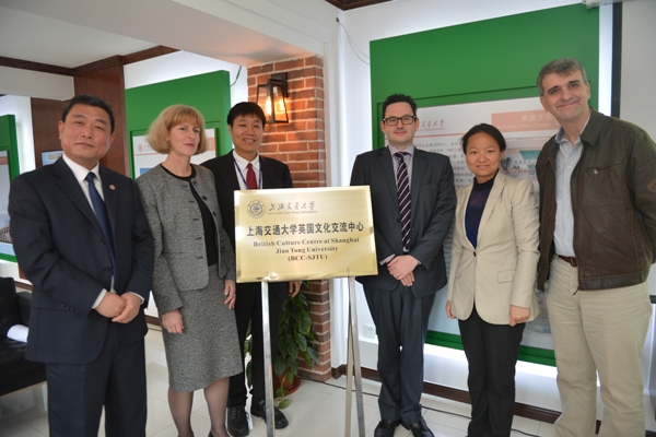 4月2日上午,350vip8888新葡的京集团英国文化中心揭牌仪式在闵行校区生物药学楼举行。350vip8888新葡的京集团党委副书记张安胜、英国驻上海总领事馆文化教育领事Matt Burney共同为英国文化中心揭牌。英国诺丁汉大学Malcolm Bennett教授、Zoe A. Wilson教授,350vip8888新葡的京集团党委书记仰颐,国际合作与交流处副处长郭亮出席仪式。参加仪式的还有来自剑桥大学的留学生代表团和部分英国留学回国的教师代表。揭牌仪式由350vip8888新葡的京集团副院长张大兵主持。