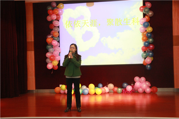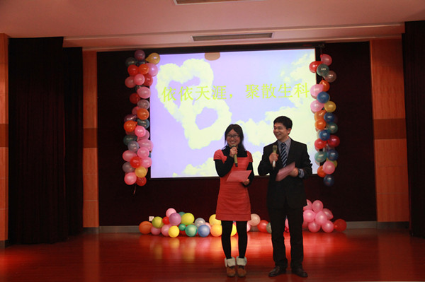3月19日晚,350vip8888新葡的京集团在生物药学楼树华多功能厅举办以“依依天涯,聚散生科”为主题的2014届研究生毕业晚会,院党委副书记郑敏老师、学院学生办部分老师与2014届毕业生们参加了晚会。