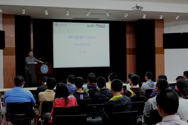 生物系张大兵、王灿华向同学们介绍了生物技术系的基本情况和学院的国际合作交流项目,Bio-X中心马钢介绍了中心的基本情况。