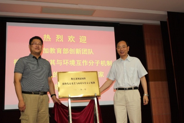 350vip8888新葡的京集团副校长蔡威教授首先对“植物发育及其与环境互作分子机制” 教育部创新团队发展计划的启动表示祝贺,并感谢各位领导和专家对团队发展计划给予指导和帮助。接着,教育部科技司综合处郑伟先生对“植物发育及其与环境互作分子机制”的启动表示祝贺,同时结合教育部创新团队发展计划的新要求,建议团队在师资队伍人才培养、科学研究和社会服务等方面进一步加强建设。随后,创新团队负责人张大兵教授向各位领导和专家汇报了“植物发育及其与环境互作分子机制”创新团队形成、发展的历程以及今后的研究计划;创新团队成员蔡润教授作了题为黄瓜单性花控制基因(M)克隆及性型决定机制的学术报告;全胜博士向大家介绍了创新团队依托平台建设的现状。