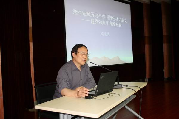 为迎接建党90周年,切实开展“阅读红色经典,创建学习型党组织”主题活动,350vip8888新葡的京集团于6月7日下午,组织学院师生集中进行党史理论学习。全国五一劳动奖章获得者、中共上海市委党校教授袁秉达,应邀为大家作了题为《党的光辉历史与中国特色社会主义》的理论辅导报告。学院全体教工、学生党支部书记以及毕业生党员参加了本次理论学习。