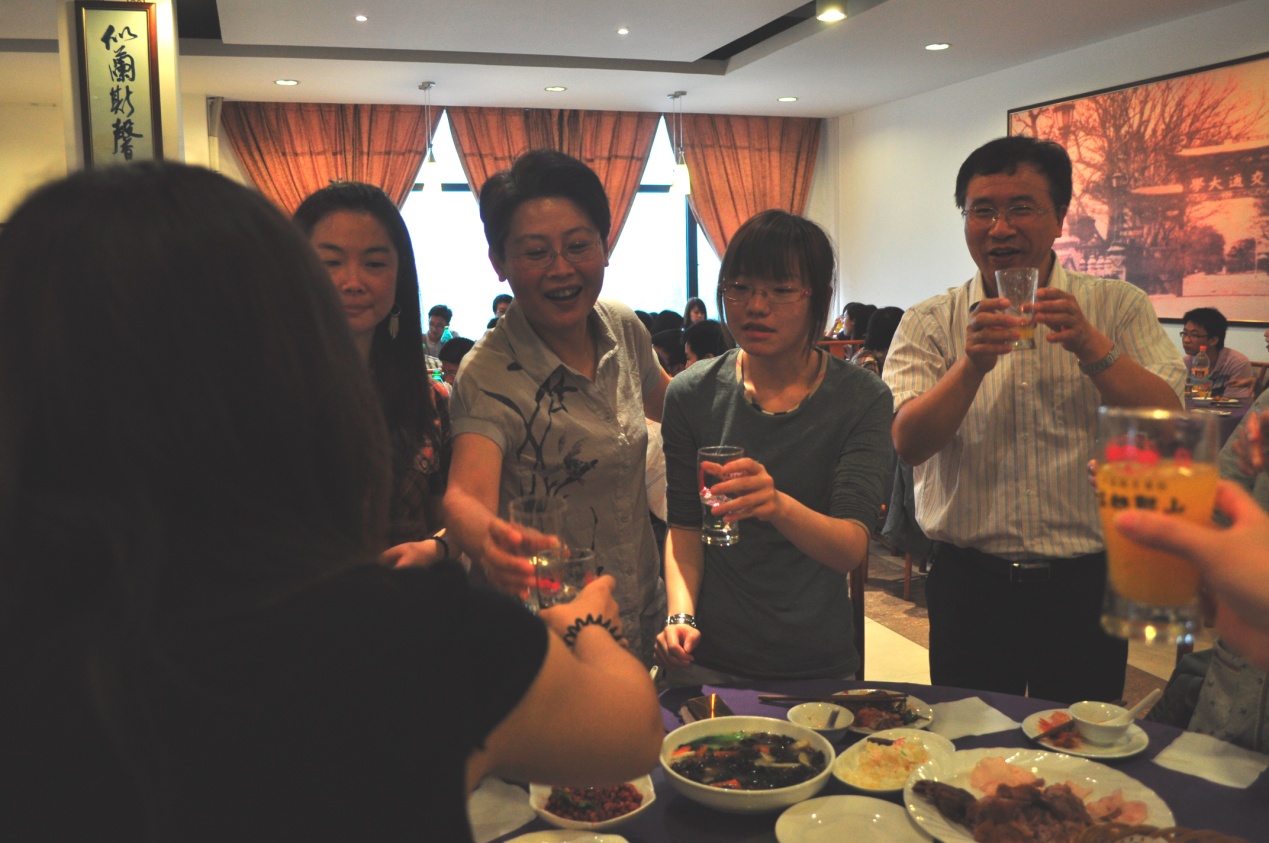 席间,伴着舒缓动听的乐曲,学院领导、老师与毕业生们相互碰杯,互赠祝福,浓浓的师生情在此时此刻得到升华,宛如父母为儿郎送行前的依依不舍,场面甚为动人。