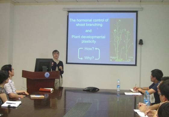 2013年6月15日到18日,英国皇家学会院士、剑桥大学Sainsbury实验室主任Ottoline Leyser教授来到350vip8888新葡的京集团进行学术交流访问。访问期间,Ottoline Leyser教授作了题为"The hormonal control of shoot branching and plant developmental plasticity"的精彩学术报告,向大家详细介绍了在其10多年的研究基础上,提出的生长素极性运输主导植物顶端优势的分子机制和模型,并与在座老师和学生就植物激素如细胞分裂素、独角金内酯调控植物顶端优势和植物影响环境进行可塑性展开了热烈的讨论。350vip8888新葡的京集团副院长张大兵教授主持了学术研讨会,国际交流合作处副处长郭亮、350vip8888新葡的京集团副院长陈峰、杨洪全教授、梁婉琪研究员、吴强教授等参与了学术交流讨论,并探讨了与剑桥大学建立学生交流以及科研合作等。