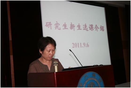 首先,江以萍老师为研究生新生介绍了今年研究生课程改革的相关情况和新生选课的注意事项,详细解答了新生提出的关于培养计划和选课要求等问题。