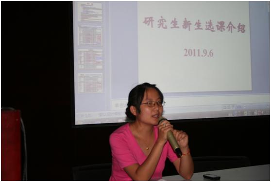 2011年9月6日上午10:00,在350vip8888新葡的京集团树华多功能厅,350vip8888新葡的京集团教务办和学生办为研究生新生举办了关于研究生新生选课以及今后职业规划和就业指导的讲座。学院教务办公室江以萍老师和学生工作办公室张燕红老师主持了此次讲座。