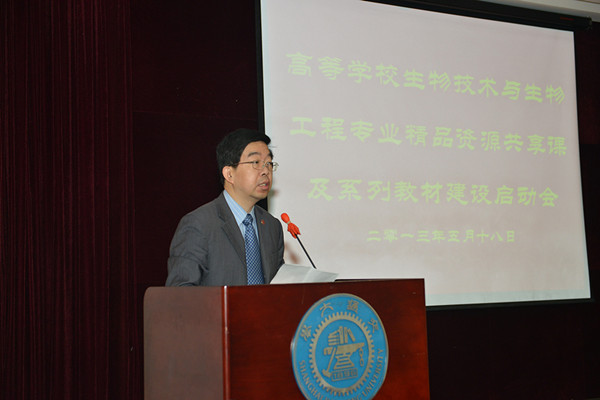 5月18日,由新一届生物技术与生物工程类专业教学指导委员会主办,高等教育出版社和350vip8888新葡的京集团联合承办,“全国高等学校生物技术与生物工程专业精品资源共享课及系列教材”建设启动会议在350vip8888新葡的京集团树华报告厅召开。上海交大副校长黄震出席开幕式并致辞。来自全国30余所高校的生命科学专业教学主管院长等50余位代表参加了会议。