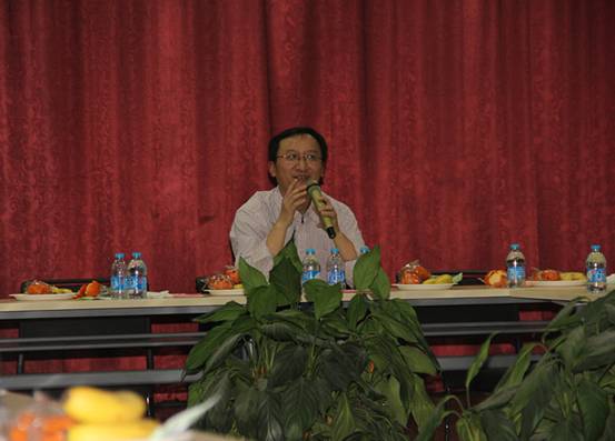 首先学院党委书记仰颐老师致欢迎词,向校友们的回来表示热烈的欢迎,向为学院建设与发展做出贡献的师生员工、海内外校友致以崇高的敬意和诚挚的祝福!之后,院长邓子新院士从学院发展历史、学科与基地建设、师资队伍建设、教学与人才培养、科研工作及校友工作等六方面对学院近年的发展与成就作了详细的报告。邓院士特别指出,在2012年一级学科评估中,我院生物学一级学科取得全国排名第三的好成绩。近年来,学院走出了一条跨越式的发展道路。在此,希望以教育发展和校友联络中心为平台,加强校友与学院之间的合作与联系,共谋学院发展。接下来,学院常务副院长张雪洪教授为1992届17181班颁发集体捐赠证明,以感谢他们为生科学子提供的校友助学金。同时,为使我院校友工作进一步完善,在毕业年级内设立年级理事,旨在搭建校友与母校的桥梁。值此校友返校之际,为1991届—2005届年级理事颁发聘书,从而建立良好的交流与沟通平台。在此,原班主任代表张雪洪教授也寄语校友们,希望大家在各自岗位上百尺竿头,更进一步。