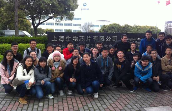 此次活动的参观地点包括上海生物芯片伯豪生物技术有限公司、上海美吉生物医药科技有限公司、上海超级计算中心以及GE中国研发中心。上海生物芯片伯豪生物技术有限公司提供基因表达谱研究、基因分型研究、比较基因组学研究、DNA甲基化研究、miRNA研究、生物信息分析等技术服务,学生们通过参观对基因芯片的原理和技术得到了了解,通过与芯片、测序仪的零距离接触,对当前生命科学领域领先的技术仪器有了感性的认识。美吉生物医药科技有限公司是一家专注于新一代DNA高通量测序技术的应用和推广、生物信息分析、临场诊断试剂盒研发和转化医学研究的公司,该公司向参观学生介绍了从样品准备到测序乃至分析的整个流程,并且对一代测序、二代测序以及未来的三代测序进行了知识普及,耐心地解答了学生们的疑惑和提问。接着学生们来到了上海超级计算中心,学生通过观看宣传片和参观展厅,了解了中心的发展以及超级计算机在各领域特别是生命科学领域的重要作用。在GE中国研发中心里,接待人员向参观学生介绍了GE的企业文化、创新理念、公司发展史等。