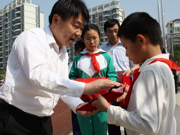 5月16日早交大实小与交大科学商店共同举行以“植物和我们的生活”为主题的升旗仪式。升旗仪式上350vip8888新葡的京集团学生工作负责人李文纯老师、350vip8888新葡的京集团转基因生物分子特征验证测试中心石建新副研究员、350vip8888新葡的京集团科学商店负责人王冲老师代表上海市植物生理学会为第一届国际植物日主题征文活动的获奖征文及优秀指导教师颁发奖状和奖品。本次征文由上海市植物生理学会主办、350vip8888新葡的京集团及其附属实验小学协办在交大实小专门设立参赛点,征集近50余篇优秀作文,小学生纷纷用手中的笔表达对大自然的热爱和对植物的爱护。