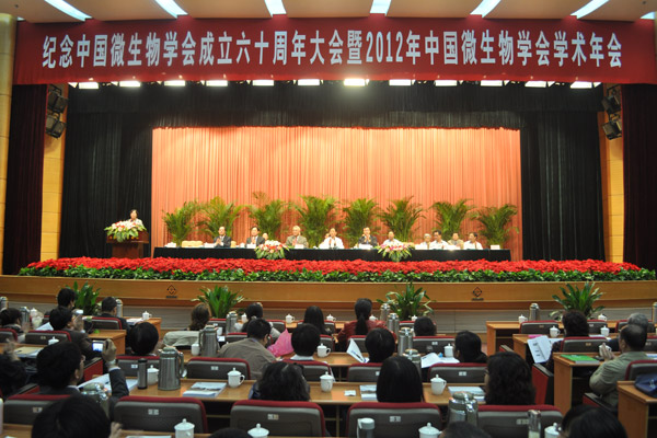 “纪念中国微生物学会成立六十周年大会暨2012年学术年会”于10月26-30日在南京市江苏省会议中心举行。由邓子新教授领队,我院冯雁、许平、白林泉、李志勇和欧竑宇等多名教授和多位博士研究生组成的十多人代表团积极参加了本次盛会,充分展示了我院精神风貌和最新研究成果。本次会议是中国微生物学会成立60年以来举办的规模最大的一次学术盛会。来自海内外的800多名学者和研究生就目前微生物学科发展的主要问题和研究热点进行了广泛交流和深入探讨。