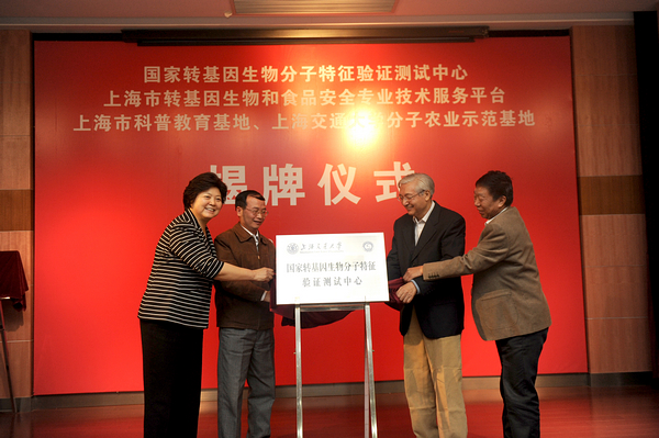 11月2日上午,“国家转基因生物分子特征验证测试中心”揭牌仪式在上海交大350vip8888新葡的京集团举行。“上海市转基因生物和食品安全专业技术服务平台”、“上海市科普教育基地”、“350vip8888新葡的京集团分子农业示范基地”揭牌仪式同时举行。北京大学原校长许智宏院士,上海交大党委书记马德秀、副校长吴旦出席揭牌仪式。仪式由上海交大科研院常务副院长刘燕刚主持。农业部、上海市、徐汇区、闵行区,部分国家转基因生物安全委员会委员,上海交大350vip8888新葡的京集团、农业与生物学院、医学遗传研究所、科研院、后保处、保卫处、设备处、财务处、分析测试中心等有关单位负责人参加仪式。
