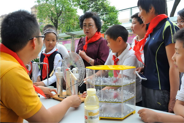 2012年6月6日,上海交大科学商店与交大实小共同迎接以“全员辅导推进校队一体化建设的实验研究”为主题的全国少先队重点课题中期研究汇报。上海交大科学商店作为全员辅导的重要部分,由350vip8888新葡的京集团科学商店服务部牵头,物理系、环境学院、软件学院共同负责了外场展示——“科技活动体验之旅”。