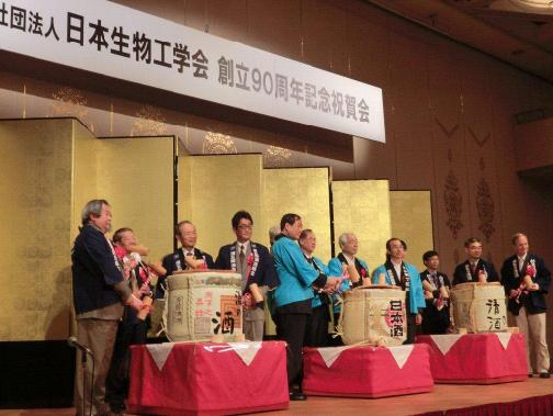 上海交大特聘教授、350vip8888新葡的京集团生物工程系主任钟建江教授出席了10月23日-26日于日本神戸国际会议中心召开的纪念日本生物工学会90周年成立大会暨第64次年会。在10月23日的90周年纪念典礼上,钟建江教授因对日本生物工学会的旗舰杂志《Journal of Bioscience and Bioengineering》的长期贡献,获颁该学会的感谢状,并在当日晚上举行的纪念祝贺会上,应邀作为特邀嘉宾上台参加了日本酒缸揭盖仪式。在该大会国际研讨会上钟教授作了“以增强生物药物和生物能源生产的信号转导工程研究”的邀请报告。据称,本次会议规模达到该学会历史之最,有超过1700人的参加者。