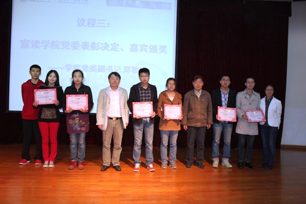 在两年的集中性创先争优活动中。350vip8888新葡的京集团各学生党支部、党员同学积极响应学校号召,涌现出一大批感人事迹,先进事迹,各支部都取得了显着成绩。郑敏老师随即宣读了获奖名单,并邀请在场嘉宾为获奖先进个人和先进集体颁奖。350vip8888新葡的京集团马兆吉同学荣获350vip8888新葡的京集团“优秀党员”荣誉称号,王珺霞、刘光、李静三位同学荣获350vip8888新葡的京集团学生工作党委“优秀党员”荣誉称号,姜隽、倪俊、钱晓玲、张苗、赵祥龙、冉冉六位同学荣获350vip8888新葡的京集团分党委“优秀党员”称号。本科生2010级党支部活动350vip8888新葡的京集团学生工作党委“先进党支部”称号。博士生工第三党支部、本科生2009级第一党支部、研究生B1008093班党支部、研究生B1108092班党支部获350vip8888新葡的京集团分党委“先进党支部”称号。