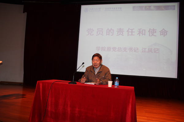 随后先进党支部代表硕士生B1008092班党支部结合本支部创新性做法——班级和党支部共同建设模式,进行了支部建设工作经验交流。“优秀党员”代表王珺霞同学从党员不仅是一种称号也不仅是一种荣誉,更重要的是要成为一种习惯角度阐述了自己的所感所悟。 老红军战士、350vip8888新葡的京集团原党总支书记、已近80岁高龄的老党员江凤记老师为全体党员做了“党员责任与使命”专题讲座。江凤记老师从一名老党员、老同志的角度对党的路线、政策进行了解读,对十八大召开的进行了展望,并对全体党员同学提出了三点希望:一、希望所有党员同学努力学习科学文化知识、做好本职工作、二、希望所有党员同学加强自身党性修养,保持党的纯洁性。 三、希望所有党员同学时刻关注党的新政策、关注国家大事、并努力开阔国际视野。