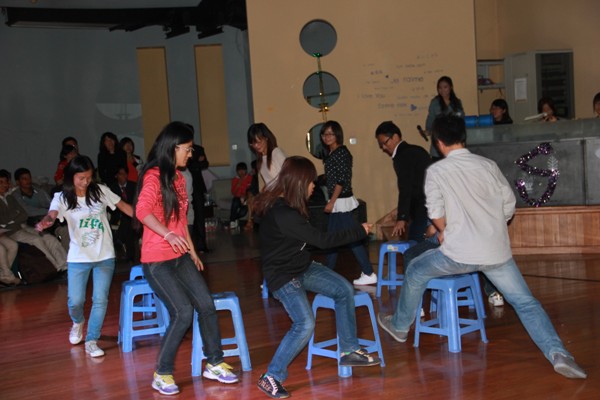 晚会伊始 ,学院学生工作负责人李文纯老师致辞,他对2012级研究生新生提出了殷切的期望,希望大家能在研究生生活中收获更多。整个晚会共分三个篇章,第一篇章“青春曼妙”在一曲时下最流行热舞《GNANAM STYLE》中拉开了帷幕,马式舞步和极具感染力的动感节奏让晚会一开始便进入了高潮;而在第二个篇章“妙不可研”中,外籍新生带来的的《孟加拉民族风情片》为同学们展示了神秘的孟加拉文化。在压轴的第三篇章“研途有你”中,群口相声《班长不给力》以同学们自己的生活经历为素材,用诙谐的语言和夸张的动作,将台下的观众一次次逗得捧腹大笑。晚会中还穿插了欢乐的小游戏“抢凳子”,让观众们也能上台加入到晚会互动中来。最后,全体同学来到舞台中央围成一圈,伴着动感的音乐一同跳起了《兔子舞》,欢快、和谐的气氛为晚会画上了圆满的句号。