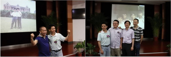 之后,校友介绍了自己毕业以来的奋斗历程,表达对母校和恩师的感激之情。当年青涩的大学生,20年后的如今在各自的领域都有所建树。其中李振彪博士和同事创立的鼎芯通讯公司,为中国3G手机业务填补了技术空白;蔡钦生博士创立了上海富兰迪生物工程有限公司,并积极参与健康科普活动,被上海市聘为健康科普专家。经历了20年的发展,校友们奋斗历程各不相同,但对母校,对老师和同学的感恩之情从未改变。张沅校友表示:“为了参加这次聚会,我带着儿子坐十几小时的飞机,专门从美国赶回来,看到昔日的同学,我心里感觉特别亲切,特别温暖。”言语朴素,却道出了浓浓的情谊。
