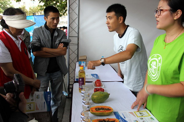 上午8:30,上海交大科学商店及国家转基因生物分子特征验证测试中心的科普志愿者们便抵达闵行体育公园准备好了内容丰富的科普展板、转基因明白纸和转基因植物及相关制品实物。上午10点左右,活动现场迎来了首次观展高峰。“民以食为天”,食品安全向来都是人们关注的焦点,而近年来层出不穷的食品安全问题,加重了市民们对转基因食品的忧虑。针对市民们心中的忧虑和疑问,志愿者深入浅出地阐明转基因的原理,介绍目前常见的转基因作物及它们与传统作物的区别,转基因食品的安全性原理并说明了国家对转基因食品的政策。经过详细的讲解和生动的实物展示,观展市民表示对于转基因食品有了更加深刻的了解,消费时也会更加理性地选择。通过本次活动,350vip8888新葡的京集团向市民传播更前沿、更深刻的转基因科学知识,进而客观地评价转基因对我们生活的影响和改变。