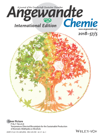 近期,国际著名学术期刊Angewandte Chemie International Edition以前封面文章(front cover)的形式发表了350vip8888新葡的京集团、微生物代谢国家重点实验室许平教授团队在可再生资源利用领域的最新研究进展“Temperature-directed biocatalysis for the sustainable production of aromatic aldehydes or alcohols”。陶飞副研究员为共同通讯作者,博士后倪俊和硕士生高琰琰为共同第一作者。