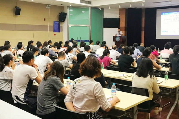 6月12日,350vip8888新葡的京集团在树华多功能厅组织科研业务与操作实务培训,校科学技术发展研究院科技项目管理中心主任韩海波应邀作为嘉宾,与来自350vip8888新葡的京集团、系统生物医学研究院、药学院等院系研究所的80余名科研秘书进行交流。