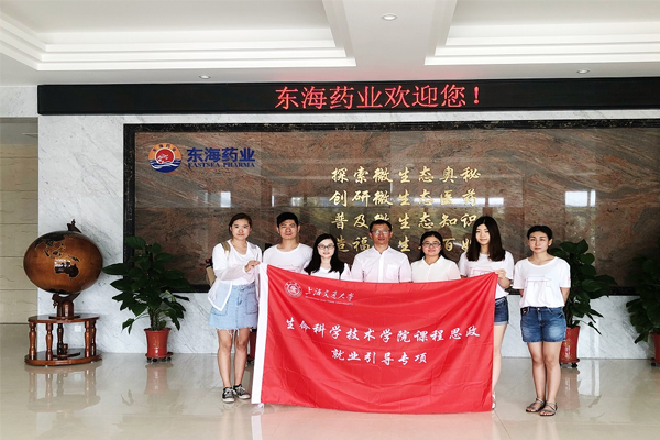 8月7日上午,实践团成员来到东海药业公司实地参观学习,工作人员详细地介绍了企业的简介及发展背景以及相关的人才培养计划,双方就微生态医药的发展前景进行了深入探讨。随后,成员们在工作人员带领下在展厅中近距离接触公司的产品,切身感受微生态药品的疗效。东海药业之行让同学们对于微生态药业有了更加深刻的了解与认识,对生物制药的发展前景充满了希望。微生态药业作为目前的朝阳产业正散发着蓬勃的生机,相信在不久的将来会有更多更好的微生态药品为人类的健康发展保驾护航。