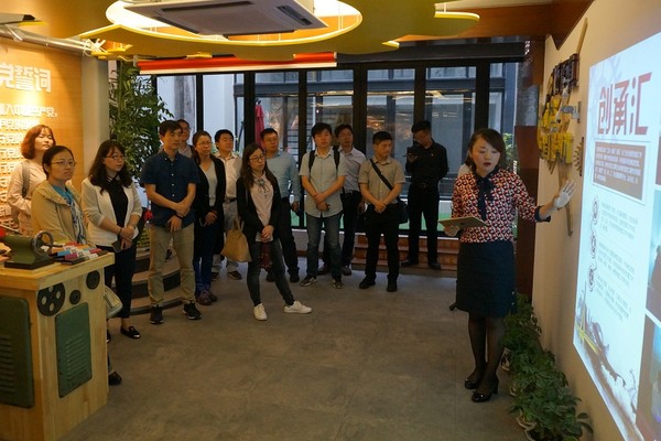 5月25日上午,350vip8888新葡的京集团党委书记仰颐、副书记郑敏和李文纯带领新一届教工党支部委员、学生党总支委员培训班学员一行二十余人走进上海杨浦区大桥街道的长阳创谷党建服务站开展实践教育学习。长阳创谷经历了从百年纺纱机械厂到全国“双创周”主会场的历史蜕变和华丽转身,是杨浦百年工业的历史缩影。这里集聚的主要是企业员工、青年白领和创客们,在这种相对松散的组织形式下,街道党委面对他们如何开展好党建工作?带着这个问题,学员们通过实地参观学习、工作人员介绍交流,与大家共同上了一堂生动的实践教育课。