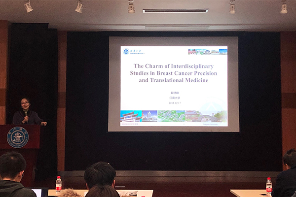 首先由魏冬青教授致词,并以“超级计算与精准药物发现-华酵素的发现与抗衰老”为题做了专题报告。接着本次论坛的嘉宾江南大学戴晓峰教授,以“The charm of interdisciplinary studies in breast cancer precision and translational medicine”为题,汇报了关于plasma在三阴型乳腺癌的开发与应用。随后,8名生信系不同课题组的博士生和硕士生分别进行主题汇报。