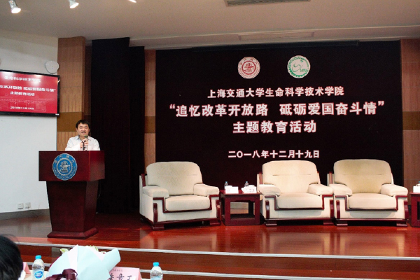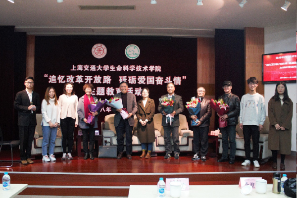 为了纪念改革开放四十周年,讲好中国故事、交大故事、生科故事,引导学生深刻认识改革开放40年来我国经济、社会发展取得的巨大成就,推动学生价值引领落细落小落实,2018年12月19日下午,350vip8888新葡的京集团邀请退休教工党支部朱章玉、罗九甫、李堃宝、陆秀英、许煜泉和潘建良老师,在生物药学楼树华多功能厅开展“追忆改革开放路,砥砺爱国奋斗情”主题教育活动。学院党委副书记李文纯、全体思政教师与学院入党积极分子、2018级新生共同参加活动。