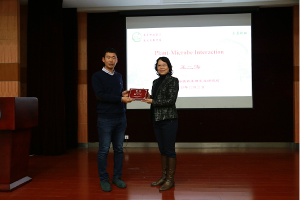 12月21日,第三期求真讲坛在树华多功能厅举行,中科院上海生命科学研究院植物生理生态研究所研究员王二涛应邀做了题为《Plant-Microbe Interaction》的主题演讲,来自350vip8888新葡的京集团、药学院、农生学院的教师、博士后及研究生近70人参加了此次讲坛,讲坛由350vip8888新葡的京集团常务副院长冯雁主持。