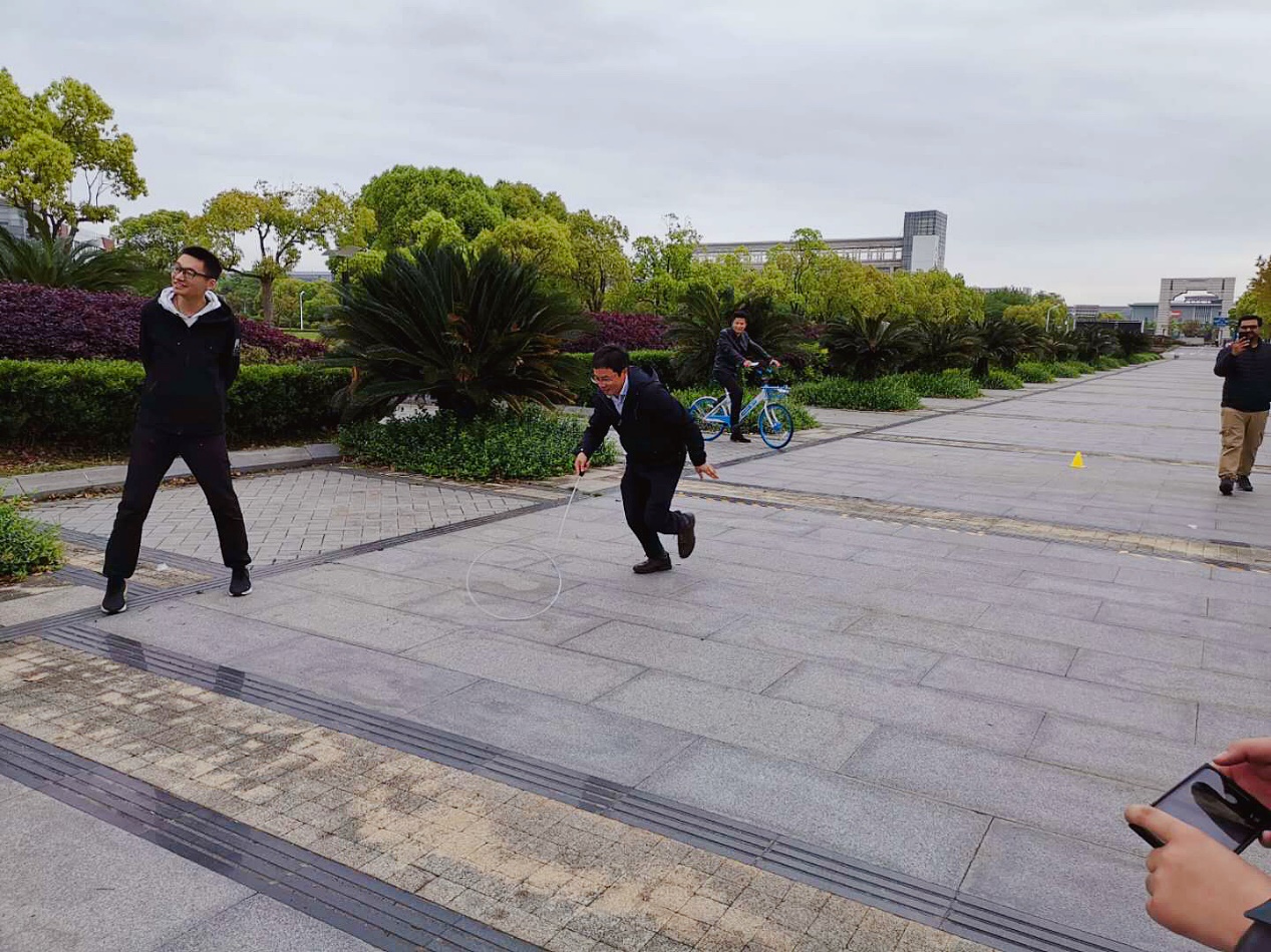 滚铁环接力将师生们的记忆拉回到了童年,也考验着推环人的平衡能力与协调能力。最终陈海峰团队以1分32秒14的好成绩获得了冠军,吕晖团队以1分41秒71获得亚军,魏冬青团队以1分46秒56获得季军。