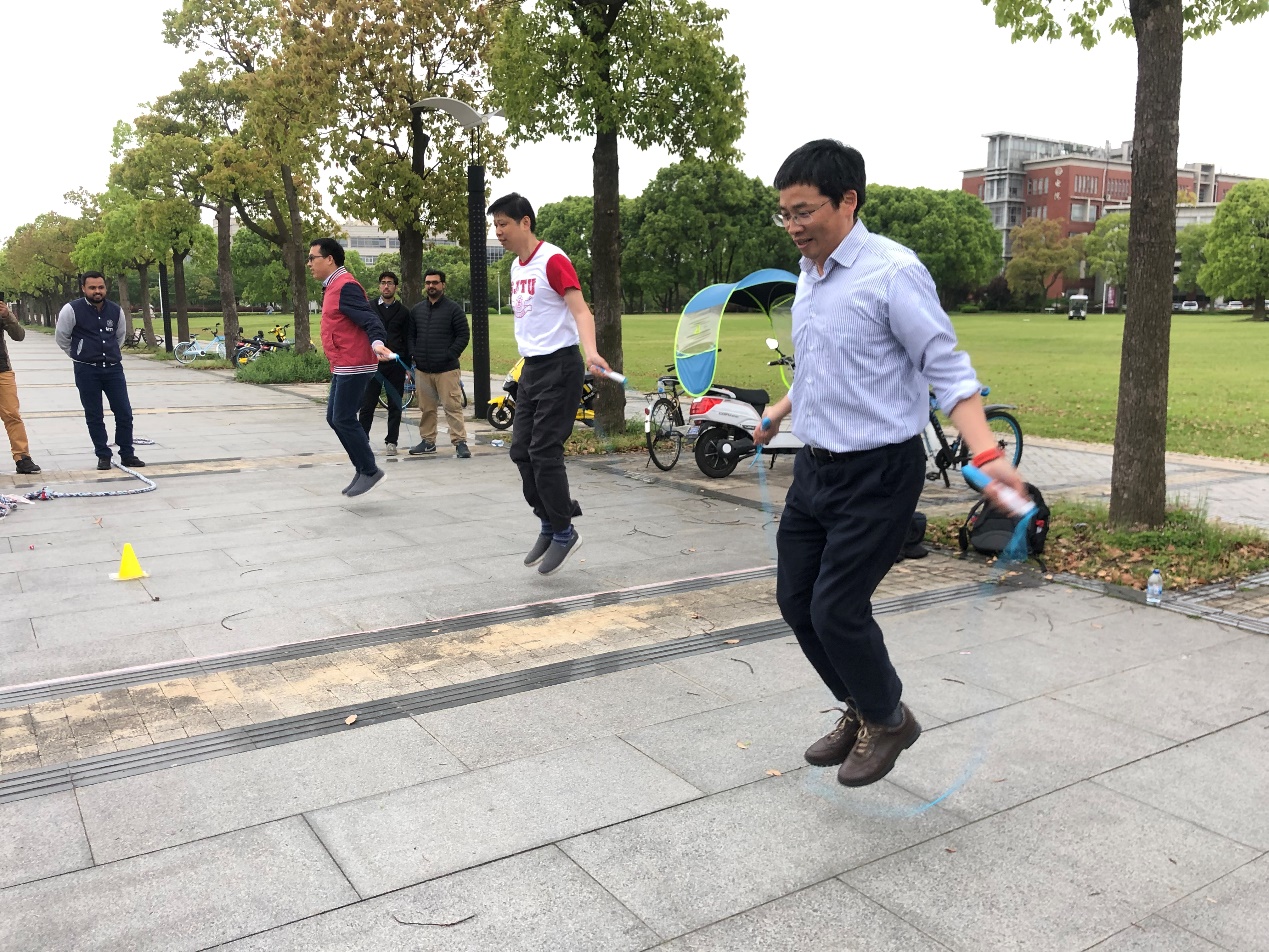 跳绳比赛将体育节带入了又一个高潮,现场气氛无比高昂与欢腾,吕晖、陈海峰、韦朝春三位老师也一起加入比赛,学生们直呼看的过瘾。最后李婧课题组的杨筱韵以一分钟186个的成绩拔得头筹。