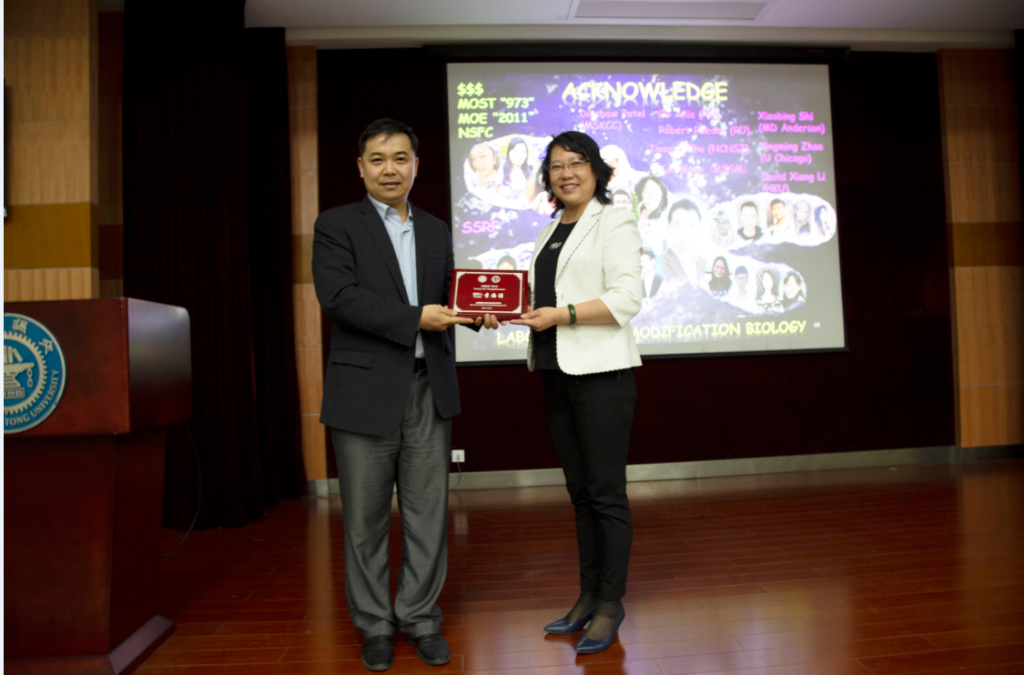 报告中,李海涛教授首先介绍了在真核生物中广泛存在的表观遗传学的重要性,提出了表观遗传学“寻找新的表观遗传调控因子”、“探索表观遗传调控的复杂性”和“相应研究工具的开发和药物研发”三个使命。李教授团队通过解析结构,在原子水平阐释了肿瘤抑制因子ZMYND11利用其串联“Bromo-ZnF-PWWP”结构域识别组蛋白变体H3.3K36me3修饰,在转录延伸水平抑制了肿瘤发生相关基因的过度表达。该修饰位置上游的H3.3S31ph一方面通过激活SETD2活性,提高H3K36me3的水平,进而促进转录延伸;另一方面,H3.3S31ph可以通过抑制ZMYND11在H3K36me3上的结合,降低其对基因表达的抑制作用。李教授团队还发现了母源因子Spindlin1特异识别一种新型组蛋白“赖氨酸-精氨酸”甲基化修饰组合(H3 “K4me3-R8me2a”)的分子结构基础,并结合细胞生物学研究,验证了该识别在结肠癌Wnt信号通路中的激活调控作用。李教授实验室与David Allis等实验室合作,发现了识别组蛋白乙酰化的“阅读器”——含有YEATS结构域的蛋白质,包括AF9、ENL、GAS41等。在植物表观遗传研究中,李教授团队也发现了ADCP1可以特异性地识别H3K9me2。基于多年的表观遗传学研究工作,李教授提出了“Ab-like Loop Evolution”假说,即表观遗传修饰“阅读器”作用方式与抗体相似,而“阅读器”识别表观遗传修饰的“口袋”与免疫球蛋白的互补决定簇相似。这些工作对于建立组蛋白修饰和人类健康与疾病之间的联系有着重要意义。