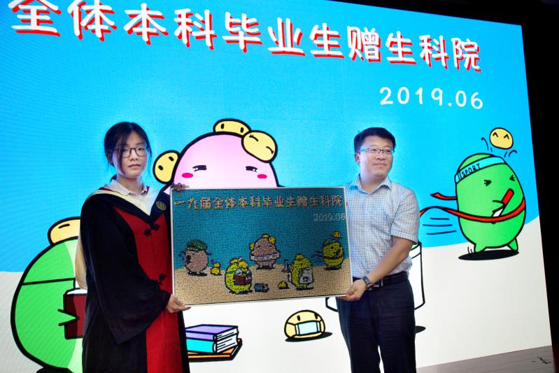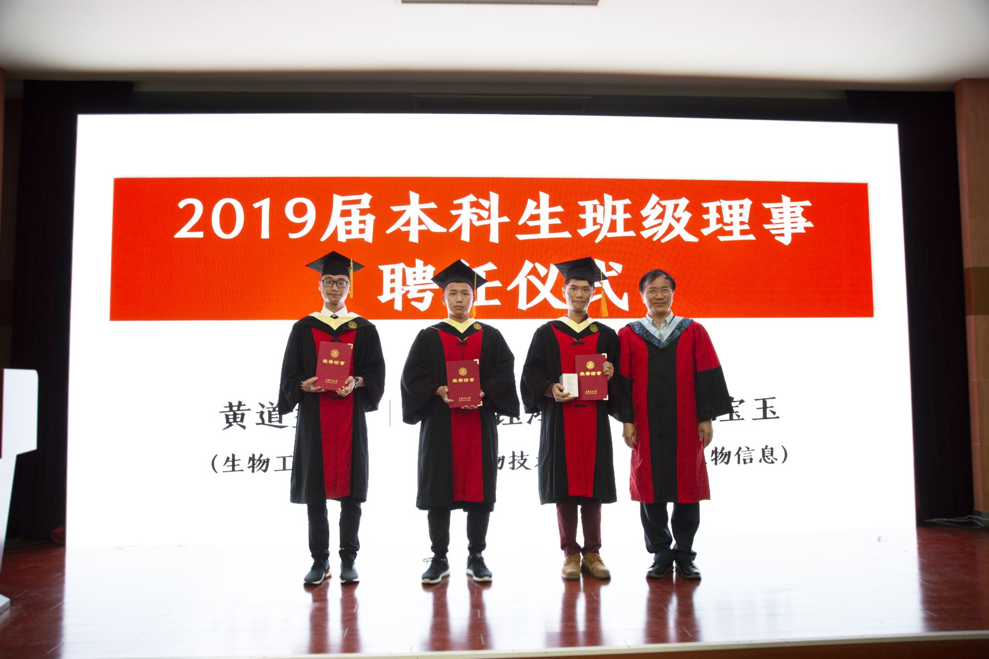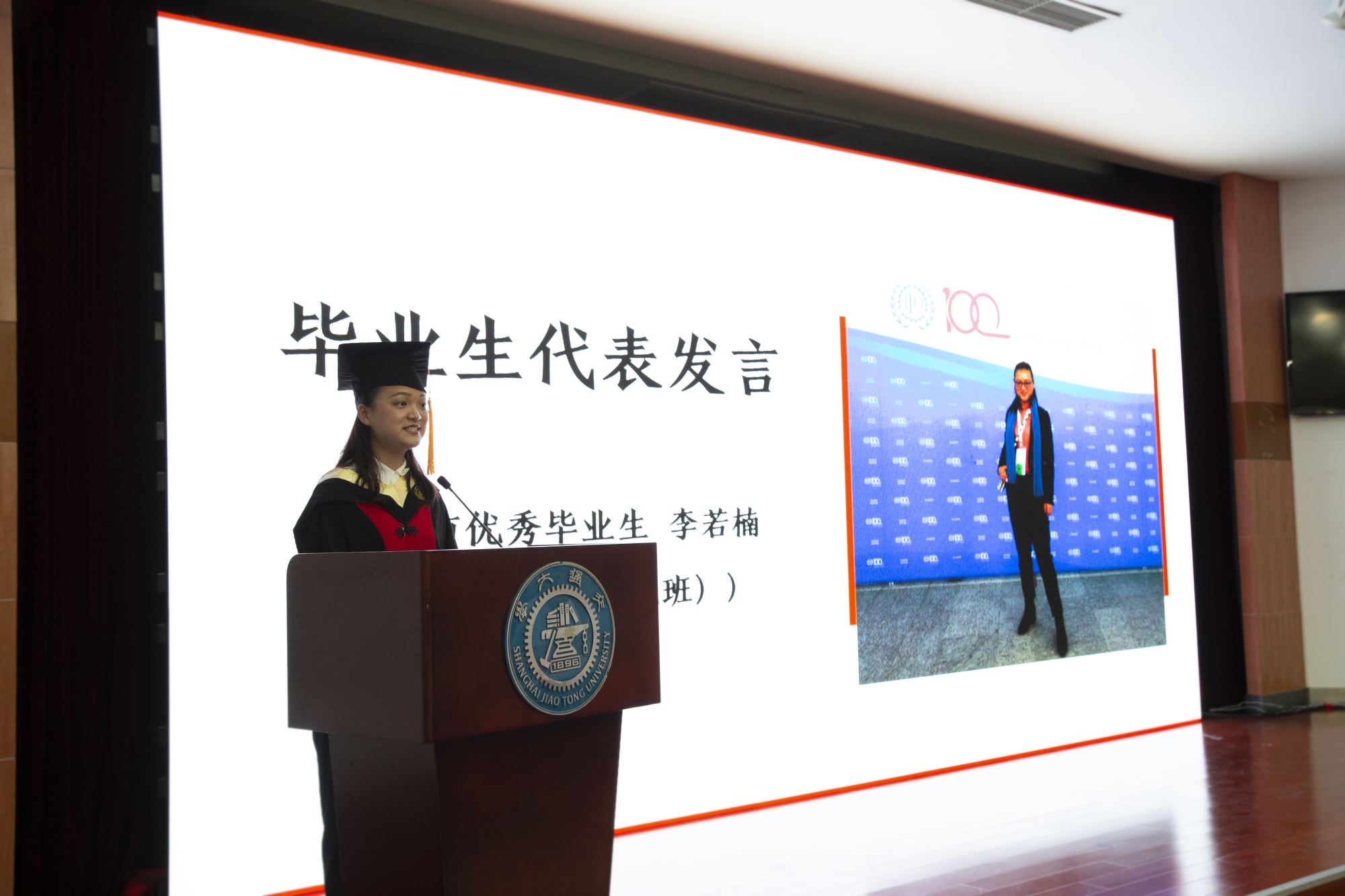 邓子新为黄道益等三位2019届本科生班级理事颁发聘书。学生代表、上海市优秀毕业生李若楠发言,感谢学院和学校的栽培、老师和同学的陪伴,讲述了交大的人、事、物教会她如何从入校初的迷茫到渐渐明确自身责任和奋斗目标的故事,最后发出倡议,希望生科学子无论在哪个行业,都要成为中国声音的传播者,中国科研的缔造者,中国行业的领军人。最后,李若楠带领全体2019届毕业生进行毕业宣誓,掷地有声的誓言宣示着毕业生们在各自领域继续奋斗的决心。在《350vip8888新葡的京集团校歌》的歌声中,毕业典礼落下帷幕。