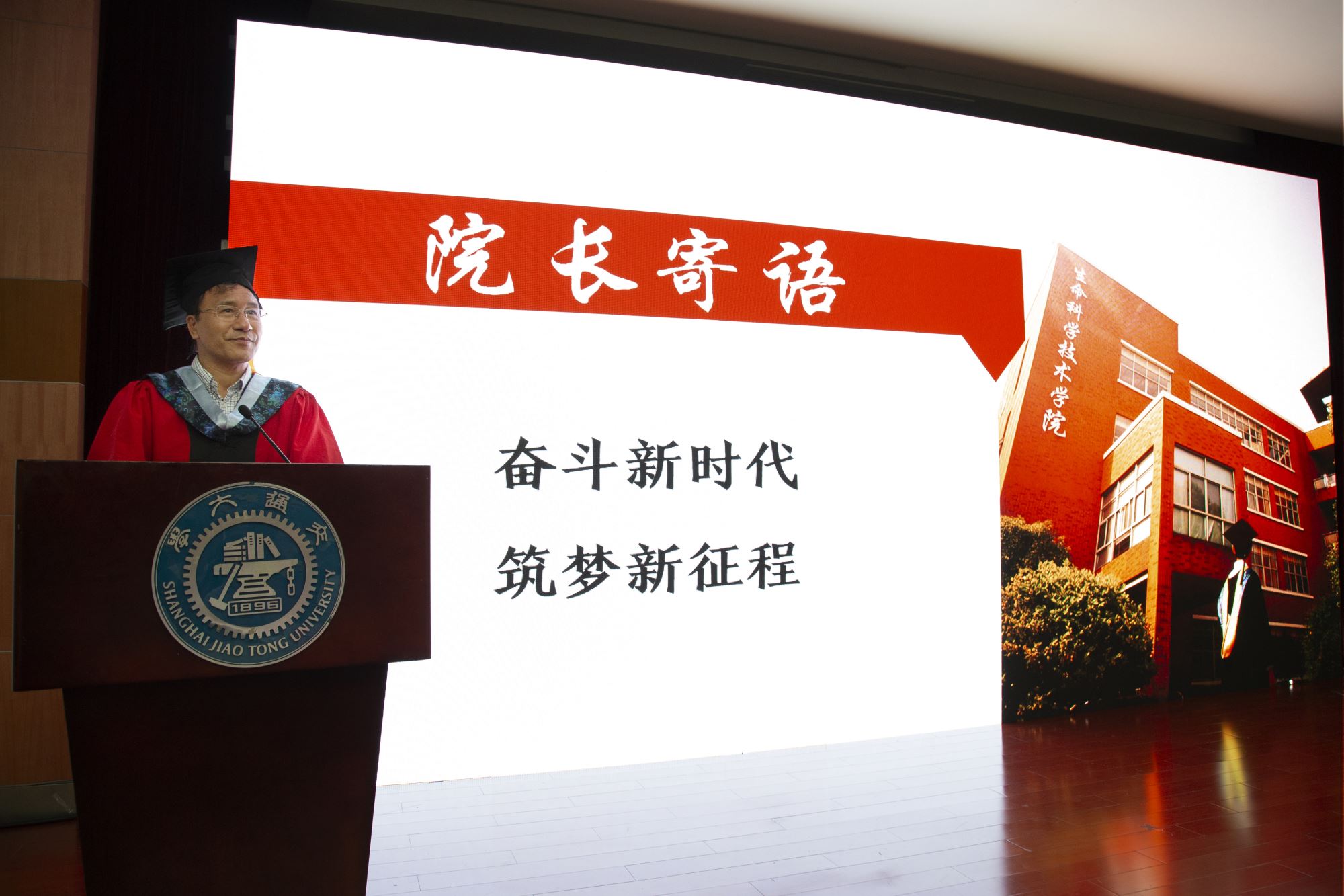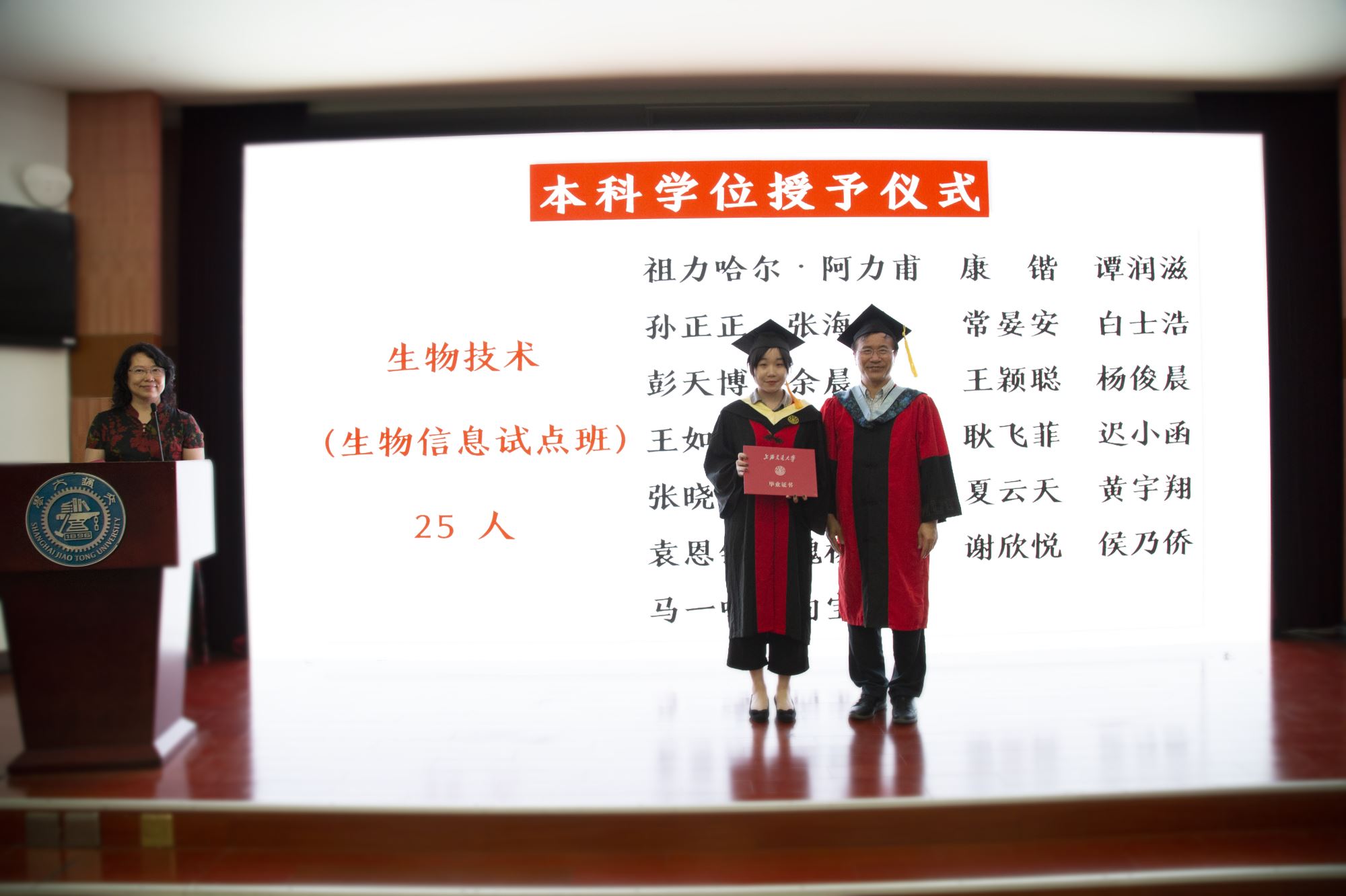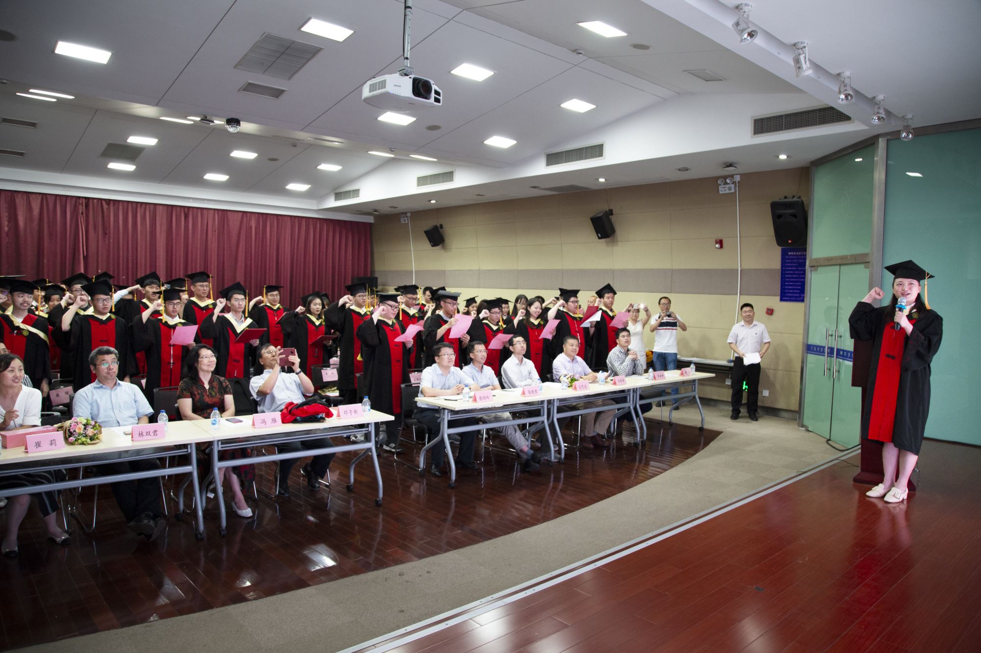 邓子新为黄道益等三位2019届本科生班级理事颁发聘书。学生代表、上海市优秀毕业生李若楠发言,感谢学院和学校的栽培、老师和同学的陪伴,讲述了交大的人、事、物教会她如何从入校初的迷茫到渐渐明确自身责任和奋斗目标的故事,最后发出倡议,希望生科学子无论在哪个行业,都要成为中国声音的传播者,中国科研的缔造者,中国行业的领军人。最后,李若楠带领全体2019届毕业生进行毕业宣誓,掷地有声的誓言宣示着毕业生们在各自领域继续奋斗的决心。在《350vip8888新葡的京集团校歌》的歌声中,毕业典礼落下帷幕。