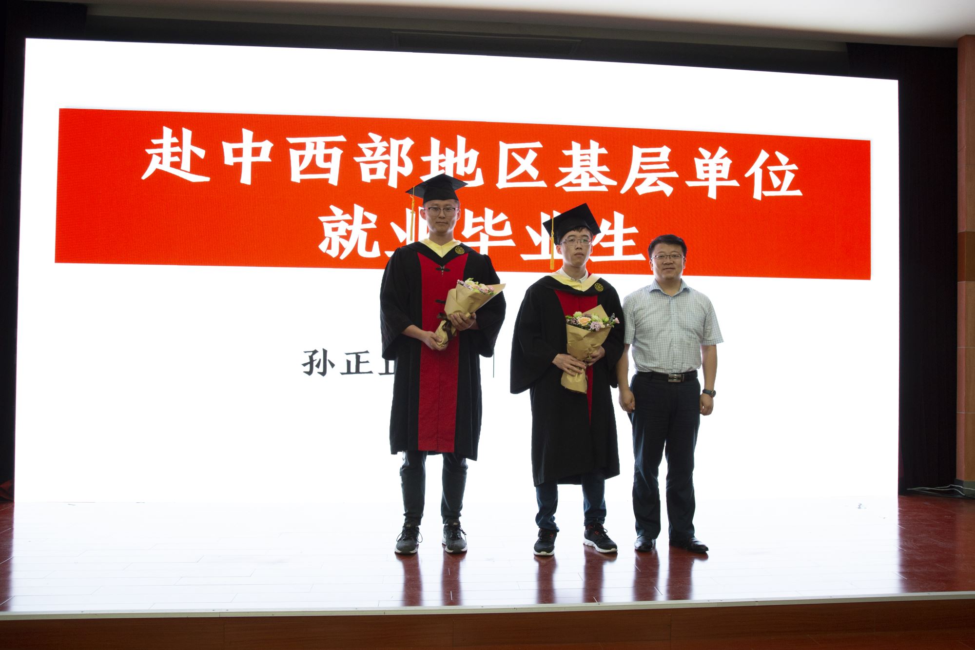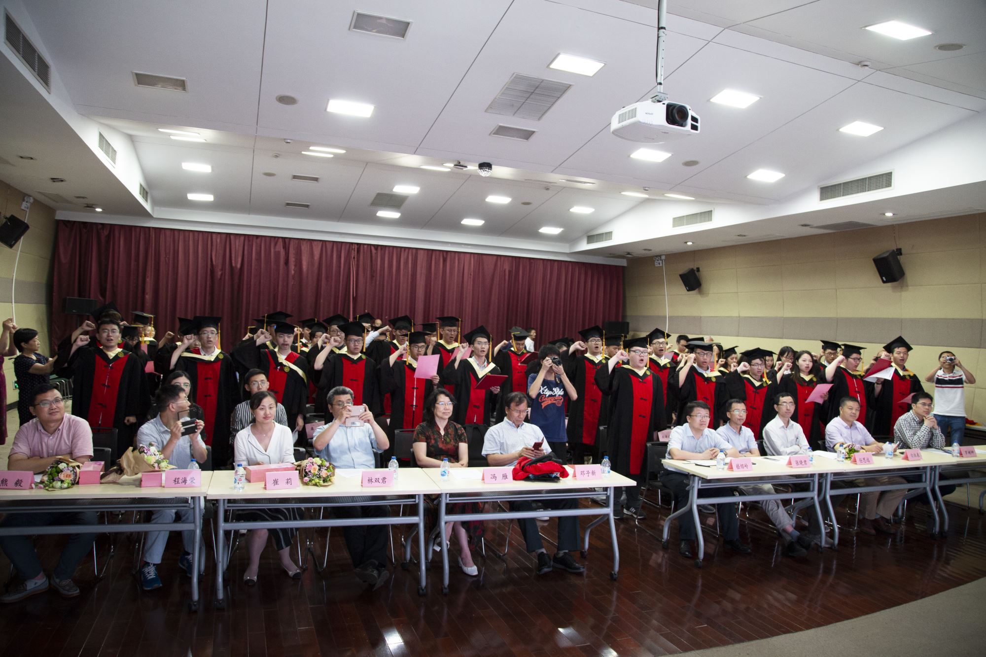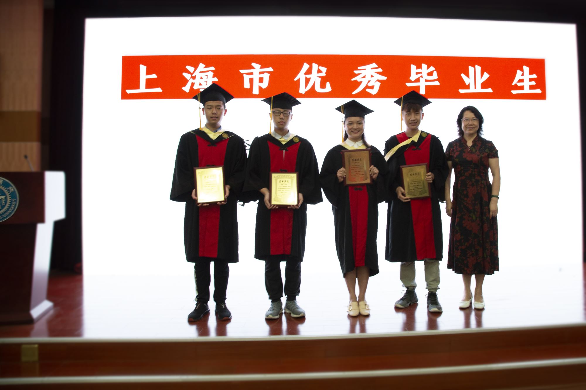 白林泉、教师代表罗树坤和谭晶为李海廓、王源祺等10位优秀学士学位论文作者颁发证书,张晓君、林双君为陈焯阳等9位350vip8888新葡的京集团优秀毕业生颁发奖牌,冯雁为李海廓、杨俊晨等4位上海市优秀毕业生颁发奖牌,嵇绍岭为孙正正、常晏安两位赴中西部地区基层单位就业的同学赠送鲜花。接着进行学位授予仪式,邓子新为毕业生一一授予学位证书并拨穗。
