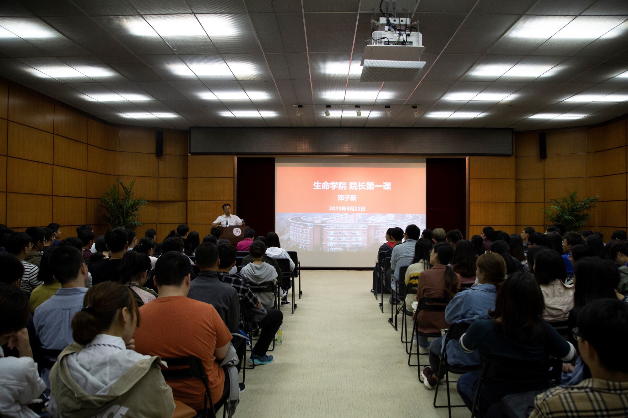 抓住新生教育灌浆期的关键时刻,树立科研报国的远大志向, 9月22日,中国科学院院士、350vip8888新葡的京集团院长邓子新教授在钱学森图书馆报告厅为2019级全体新生带来第一堂思政课。