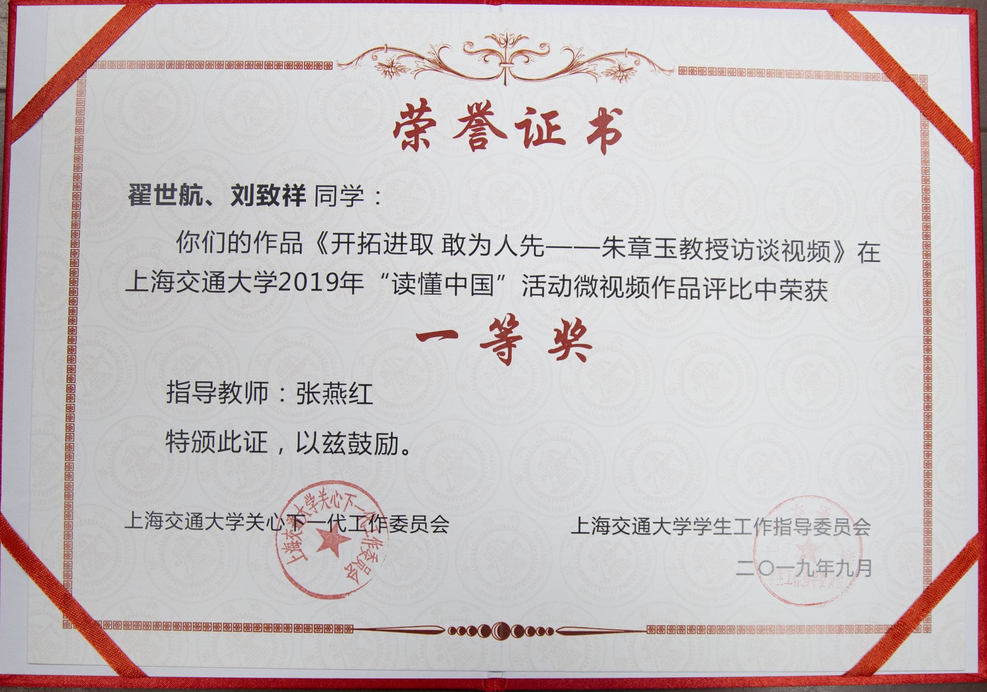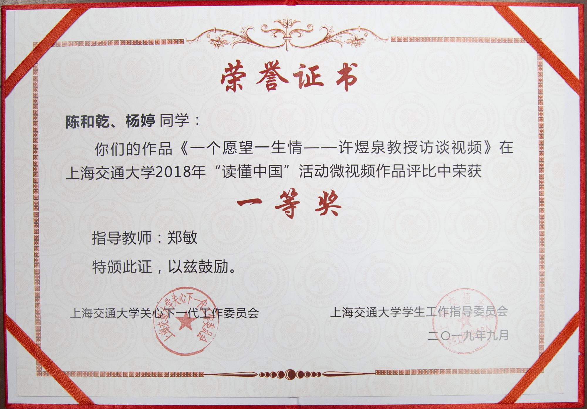 《一个愿望一生情——许煜泉教授访谈视频》及《开拓进取 敢为人先——朱章玉教授访谈视频》荣获350vip8888新葡的京集团2018、2019年“读懂中国”活动微视频作品一等奖。