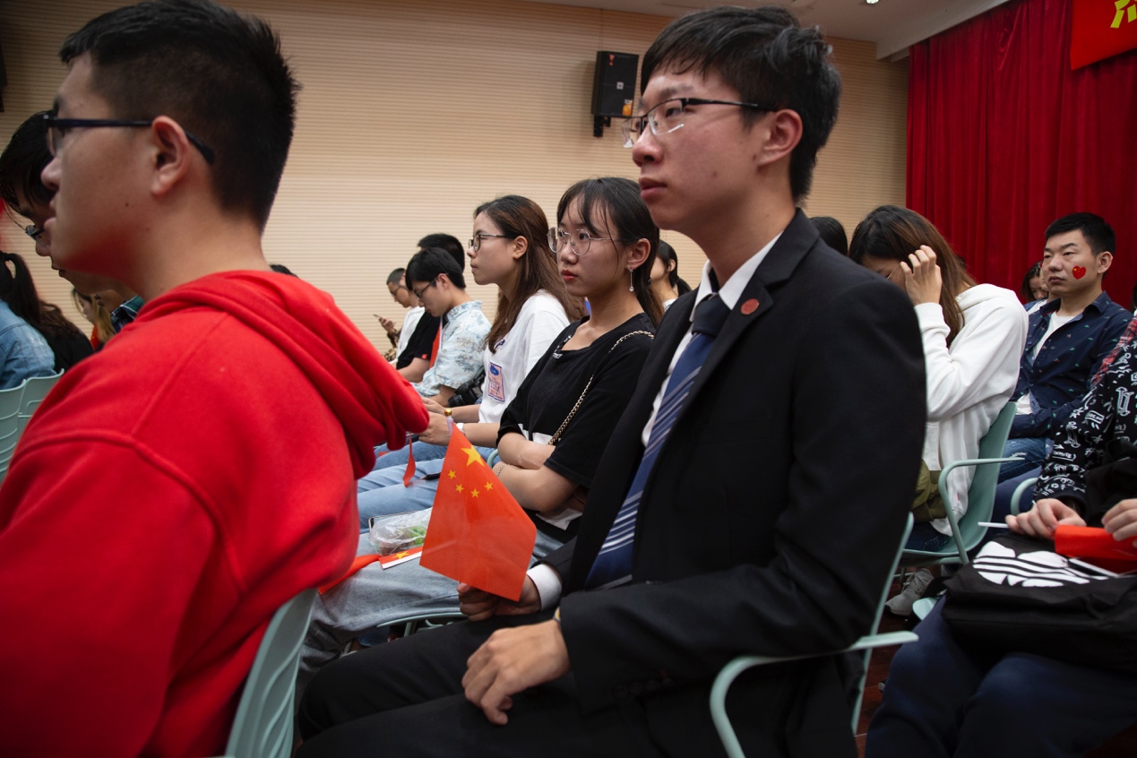 2019年10月1日早8点,350vip8888新葡的京集团本科生党支部党员同志们齐聚菁菁堂广场观看升旗仪式。伴随着雄壮的国歌声,同学们目送着五星红旗缓缓升起,不由挥舞手中的小国旗,以传达心中激荡着的爱国之声。