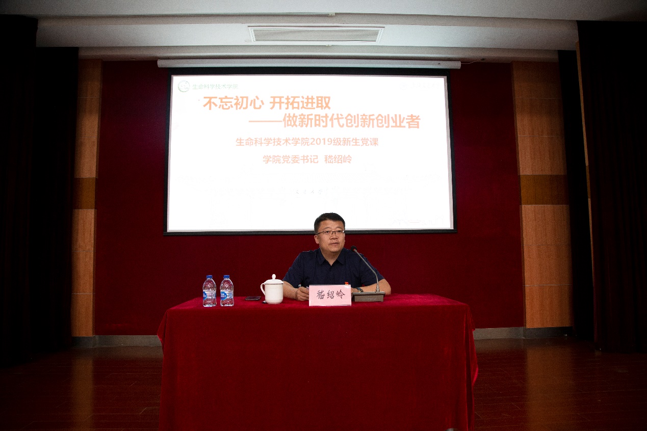 嵇绍岭围绕“不忘初心、牢记使命”,从学院创建、生科发展和寄语新生三个方面展开详细阐述。嵇绍岭介绍了生命学科从无到有的发展历程,通过一段短视频与同学一起回顾了创建初期朱章玉等老一代生科人开拓进取、埋头苦干,坚持“教学、科研、开发三个轮子一起转”的办系办所原则,不等、不靠、不要,自力更生、艰苦奋斗的故事。在学院由弱攀强的二十余年中,生科人秉承“修德厚爱,健己惠人,强队谐群,凝特聚优”的学院文化,各项事业实现了跨越式发展态势。嵇绍岭介绍了学院杰出年轻校友的故事,对新生提出四点希望。希望同学们不忘初心、牢记使命担当;砥砺前行、祖国常怀心间;立志高远、追求卓越、为理想而奋斗;苦练本领、践行实干精神。最后嵇书记勉励同学珍惜建院以来努力取得的成果,传承生科人开拓进取、敢为人先的精神,响应习总书记的号召,科技报国,以人类健康使命为驱动动力,为中华民族伟大复兴的中国梦而不懈奋斗。