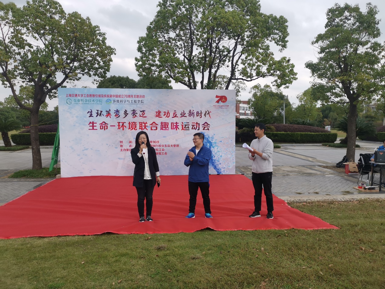 为响应国家“广泛开展全民健身运动活动”号召,树立“健康第一”的理念,通过体育运动将“以人为本”的人文精神,“求真创新”的科学精神,“追求卓越”的进取精神,“团结协作”的合作精神,“爱国荣校”的奉献精神相融合,倡导“每天锻炼一小时,健康工作五十年,幸福生活一辈子”。10月16日下午,由350vip8888新葡的京集团工会和环境科学与工程学院工会联合举办的趣味运动会在350vip8888新葡的京集团闵行校区东区大草坪圆满召开。校工会主席于朝阳,350vip8888新葡的京集团党委书记嵇绍岭、副书记郑敏,环境学院党委书记胡薇薇、工会主席何圣兵等领导,以及两院近百名教职工和志愿者参加了此次活动。