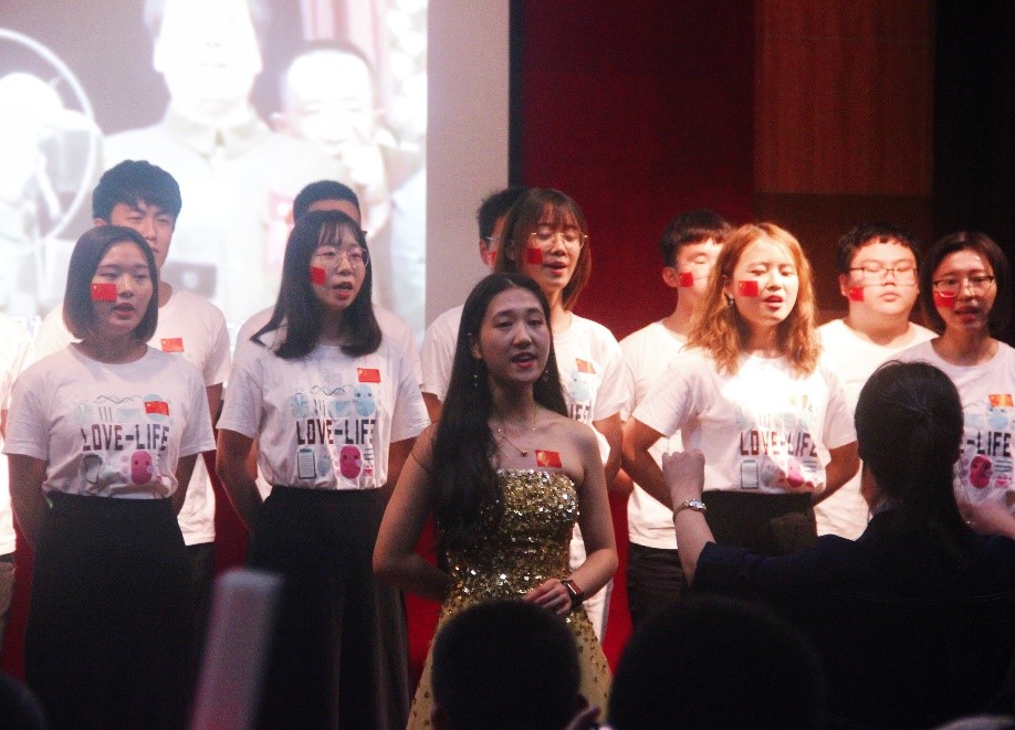 《可爱的中国》合唱暨朗诵节目带领大家回顾了新中国成立七十年风雨中取得的重大成就,生科人以歌声点赞中国。