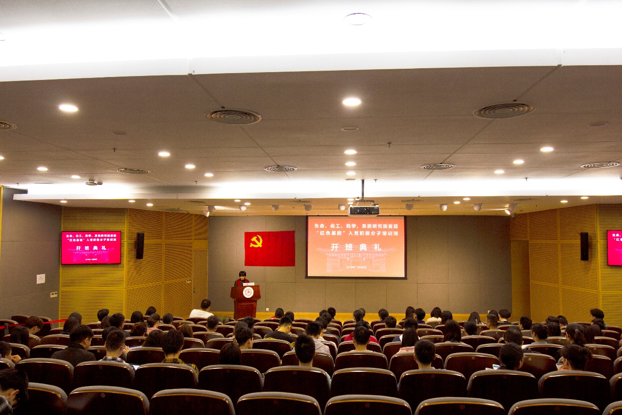 为进一步加强和改进入党积极分子的培训工作,逐步推进培训工作的规范化、制度化,350vip8888新葡的京集团、化学化工学院、药学院、系统生物医学研究院联合开展首期“红色基因”入党积极分子培训班。11月6日下午,入党积极分子培训班开班典礼及第一场理论教学在系统生物医学研究院一楼报告厅举行,校学生工作党委书记刘宇空、350vip8888新葡的京集团党委副书记李文纯、化工学院党委副书记郑浩、药学院党委副书记孟祥琦、四个院系党建指导老师以及培训班全体学员参加典礼。开班典礼由首期培训班班主任、350vip8888新葡的京集团党建指导老师张燕红主持。
