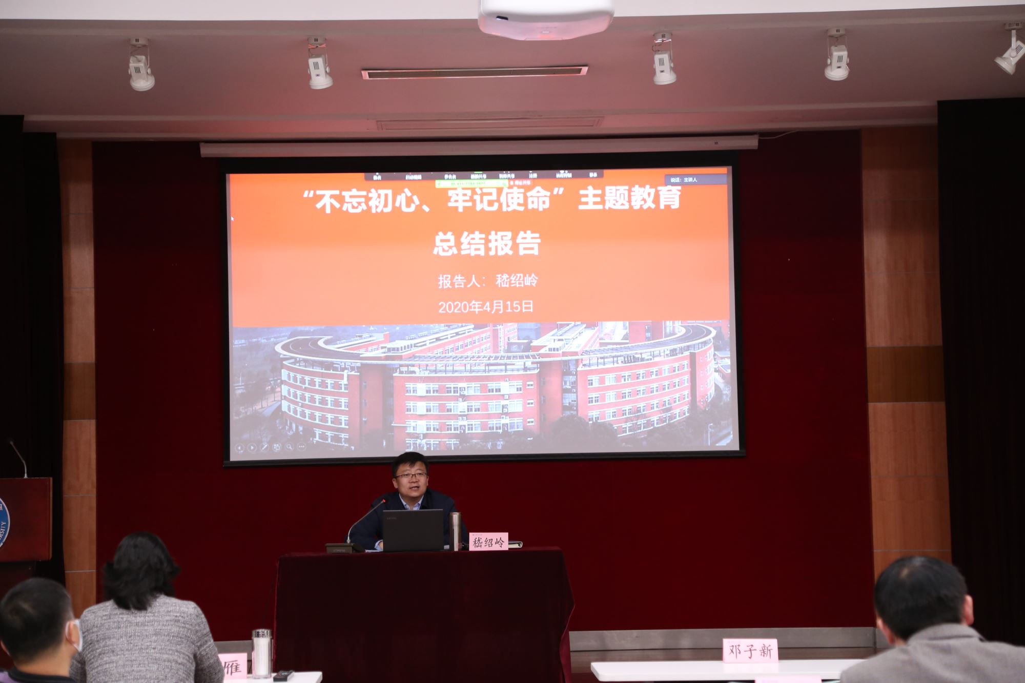 学院党委书记嵇绍岭代表学院党委作主题教育总结报告,从学院主题教育开展情况、主题教育实效及构建主题教育长效机制三个方面汇报了学院主题教育推进情况。学院党委牢牢把握守初心、担使命、找差距、抓落实的总要求,切实把“学习教育、调查研究、检视问题、整改落实”贯穿主题教育全过程,注重实际效果,圆满完成各项工作任务。学院在主题教育中收获丰硕,理论学习有收获,进一步加强了思想理论武装,提高了运用党的创新理论指导实践、推动工作的能力;思想政治受洗礼,增强“四个自觉”、坚定“四个自信”、做到“两个维护”,进一步坚定了教育报国的信念;干事创业敢担当,提振了干事创业的精气神,持续推进学院改革发展,以钉钉子精神抓好各项工作落实;为民服务解难题,学院领导班子和广大党员树牢群众观点,坚持走群众路线,着力解决事关师生的切身利益的难事急事,进一步站稳了人民立场;清正廉洁作表率,进一步深度涵养清风正气,推进全面从严治党,营造风清气正的政治生态。
