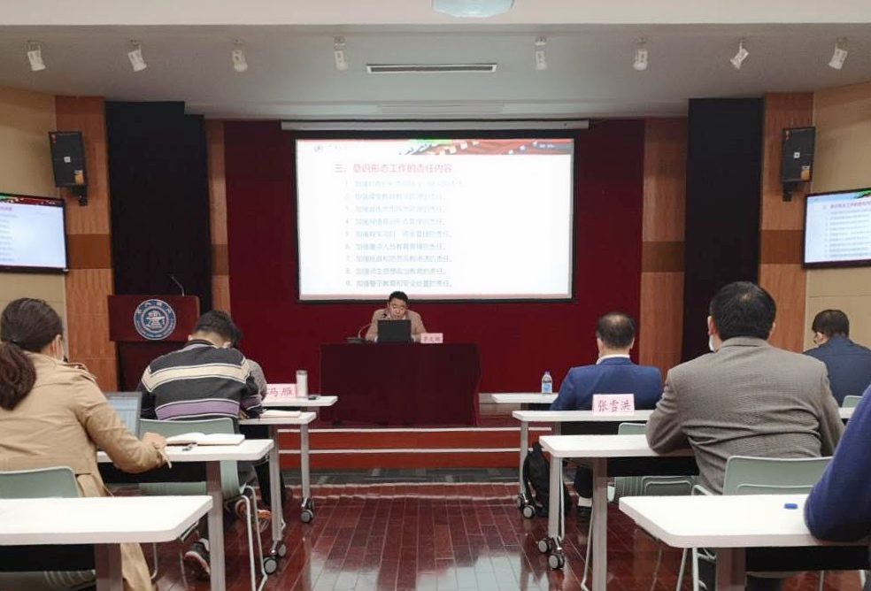 李文纯介绍了《中共350vip8888新葡的京集团委员会落实意识形态工作责任制实施细则》。学院党委严格按照党管意识形态的原则和从严治党的要求,进一步加强和改进新形势下意识形态工作,牢牢把握意识形态工作领导权、管理权和话语权,明确意识形态工作责任,从九大方面规范了意识形态责任制的内容,并明确责任追究。最后,李文纯通报了意识形态领域违纪案例和违反教师职业行为十项准则的典型案例,通过宣传警示,防微杜渐,防患未然。