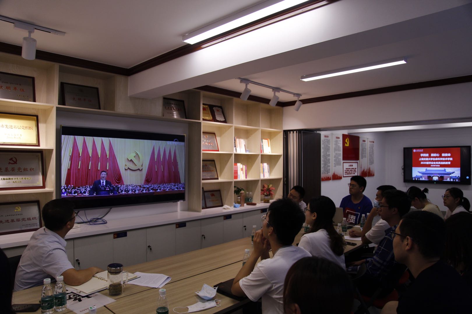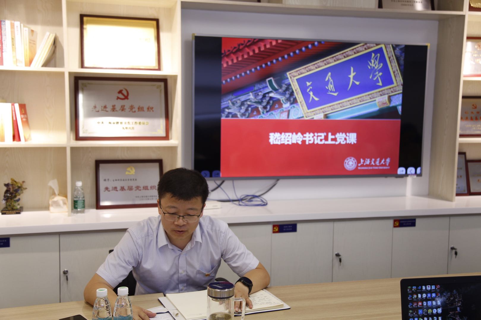 嵇绍岭首先介绍了习近平总书记提出学“四史”的背景以及上海市委对学“四史”提出的要求,指出今年是建党99周年,即将迎来党的百岁生日,百年的开始,以史鉴今、资政育人,从历史中汲取勇气和力量,我们共产党人才能坚定信心,保持定力,锐意进取,开拓创新,坚持和发展中国特色社会主义,把党和国家各项事业继续推向前进。随后嵇绍岭与大家共同观看了关于共产党人的初心的一段视频,并指出青年党员要牢记为中国人民谋幸福,为中华民族谋复兴的初心和使命,要自觉加强党的理论学习,切实增强“四个自信”,强化“四个意识”,坚定信念,始终保持自身的纯洁性、先进性,全心全意投入到实现中华民族伟大复兴的事业当中。最后嵇绍岭结合两段小视频,以及疫情期间生科校友张烽、赵百慧的抗“疫”事迹,阐述生科人的使命担当,希望大家立志高远,积极响应习总书记的号召,以社会主义建设者和接班人的使命担当,为全面建成小康社会、全面建设社会主义现代化强国而努力奋斗,让中华民族伟大复兴在我们的奋斗中梦想成真。