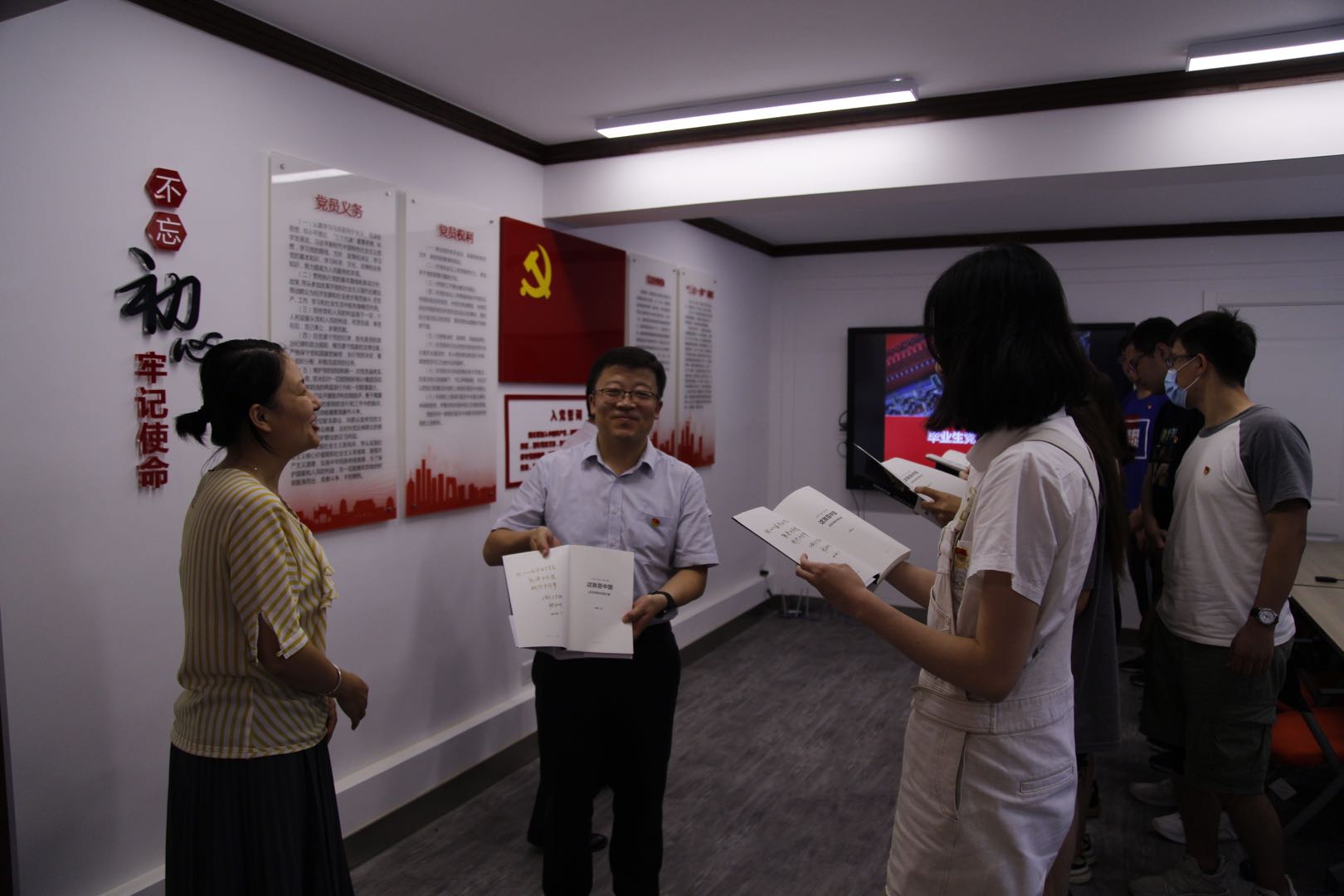 党课之后进行赠书环节,学院特别为每一位毕业本科生党员准备了书籍《这就是中国》,在书的扉页由嵇绍岭题写“谙熟中国情,践行中国梦”,勉励毕业本科生党员能够了解中国,读懂中国,树立中国自信,并带着这份自信走向世界,讲好中国故事,传递中国声音。