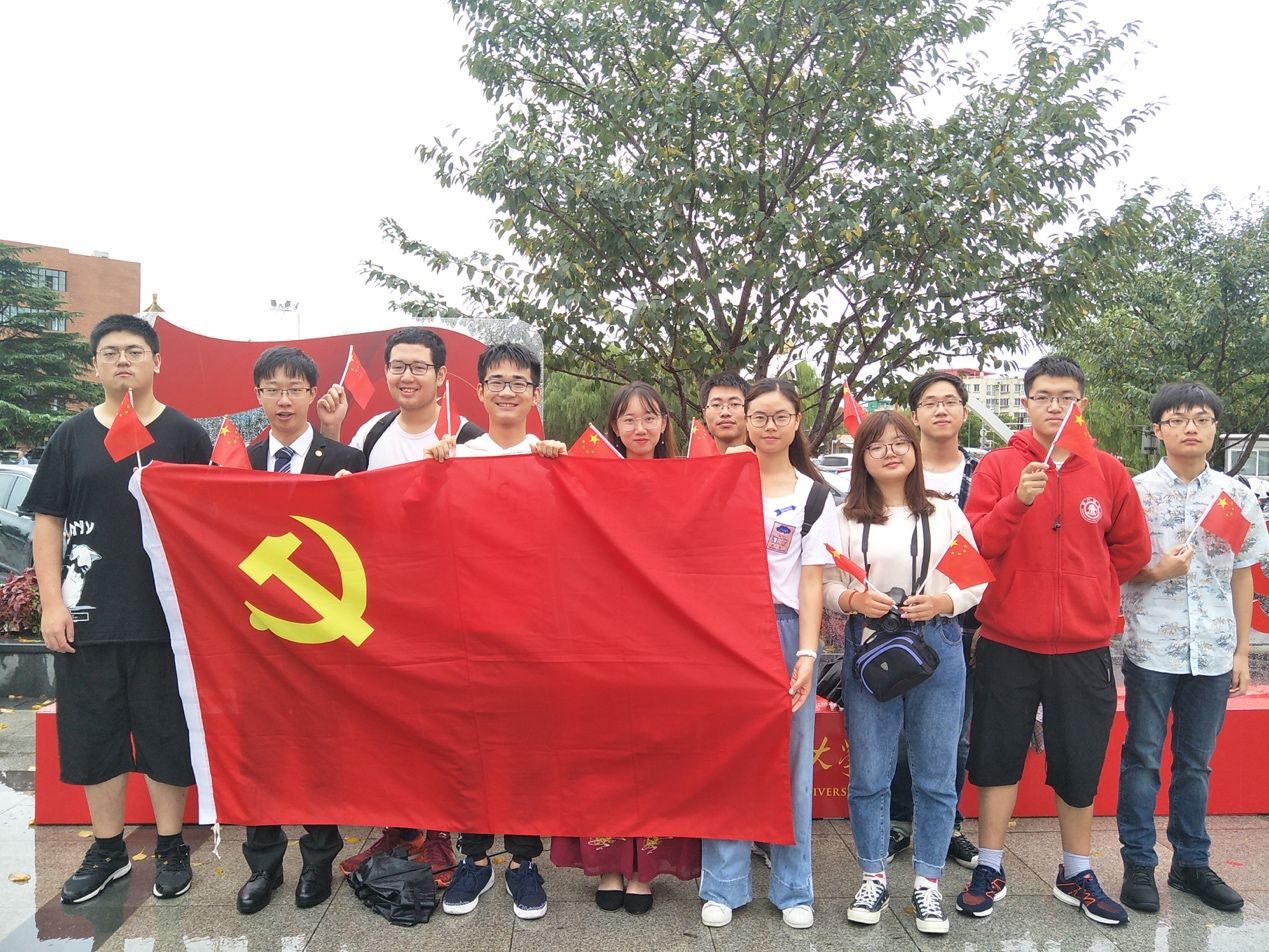 2019年10月1日早8点,350vip8888新葡的京集团本科生党支部党员同志们齐聚菁菁堂广场观看升旗仪式。伴随着雄壮的国歌声,同学们目送着五星红旗缓缓升起,不由挥舞手中的小国旗,以传达心中激荡着的爱国之声。